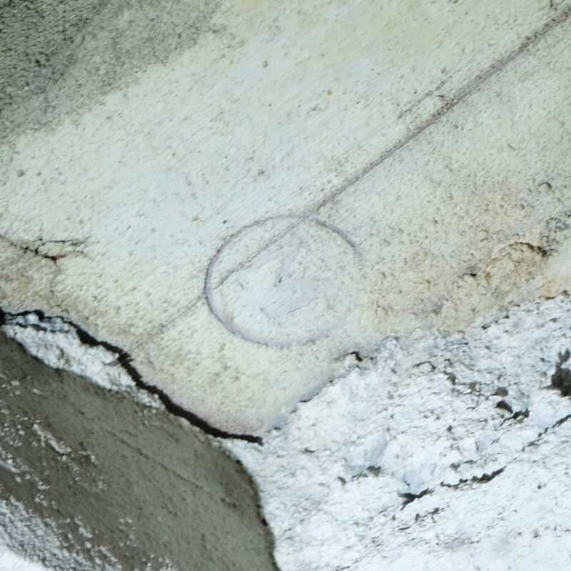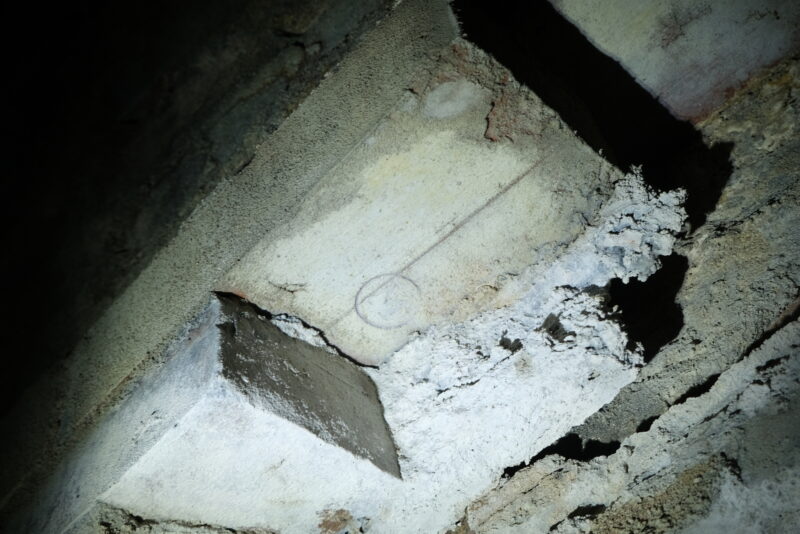 北部の並形煉瓦使用区間の崩壊部に。松本煉瓦の刻印かと見紛うが向山トンネルは昭和2年に廃止されているのでここで見られるのは矛盾する。(念の為松本煉瓦カテゴリーにも分類)